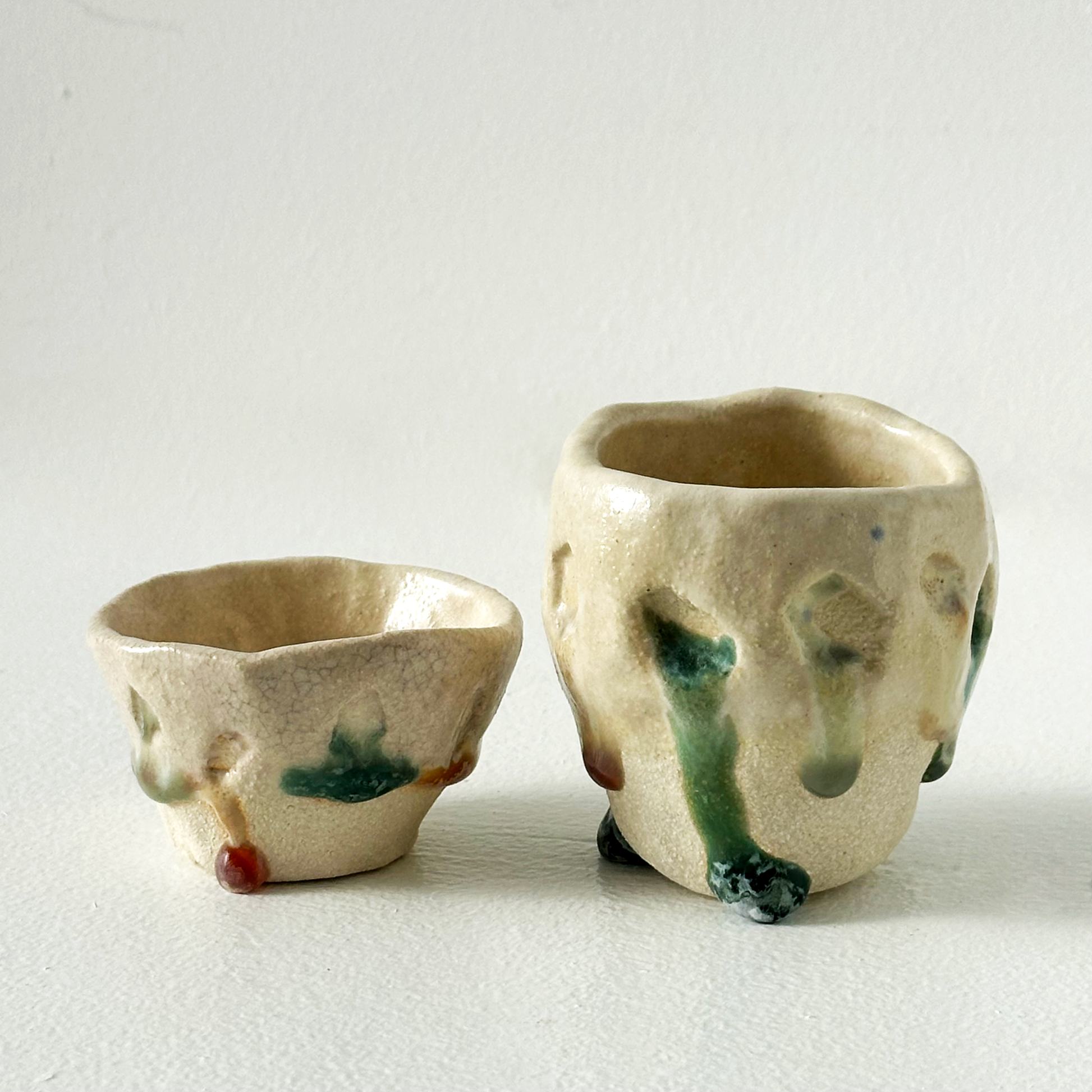 Two handmade cups by London-based multidisciplinary artist. Original works, there is only one of each design.