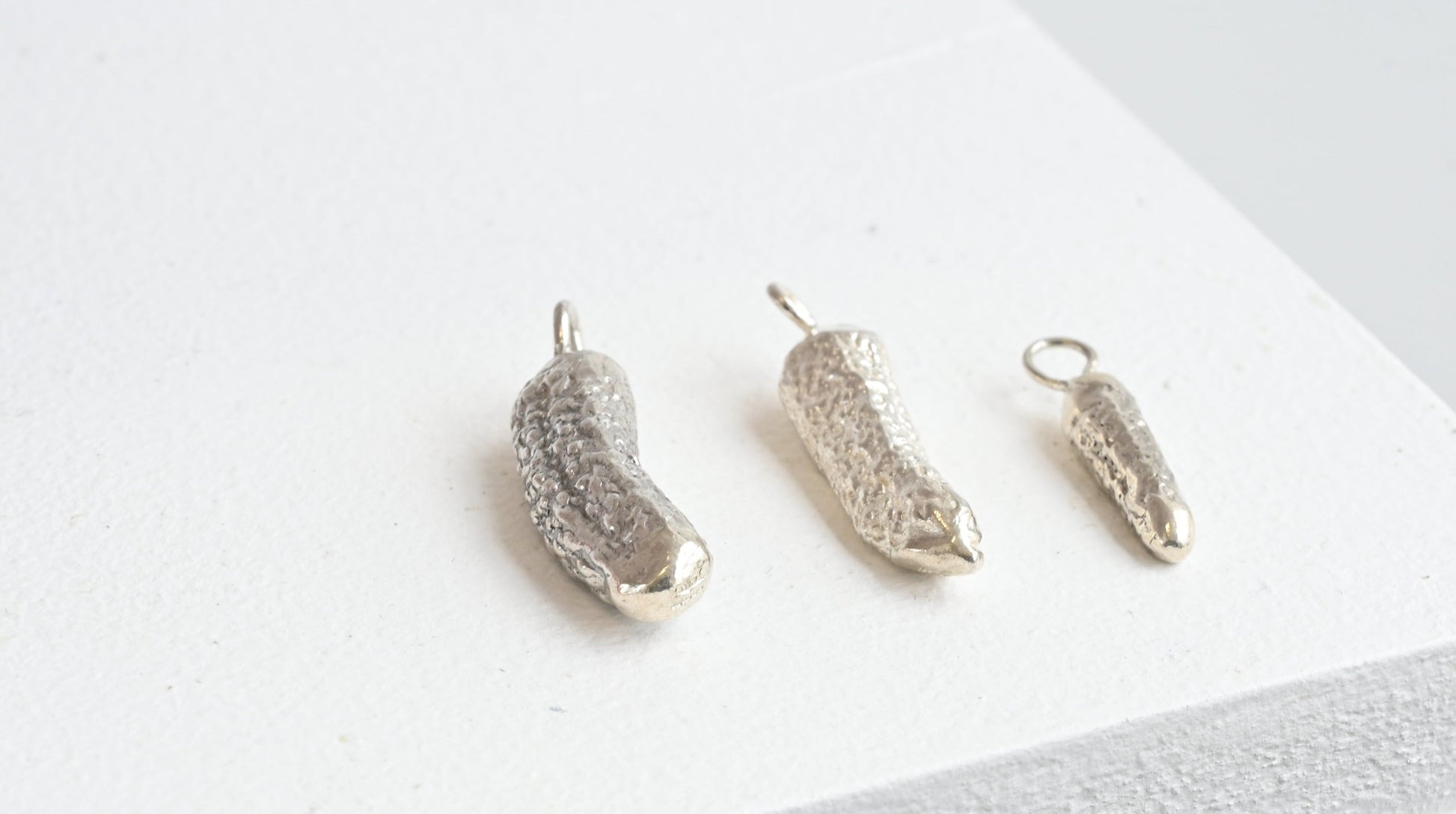 Each pendant has been hand carved and cast from specially selected original pickles.
