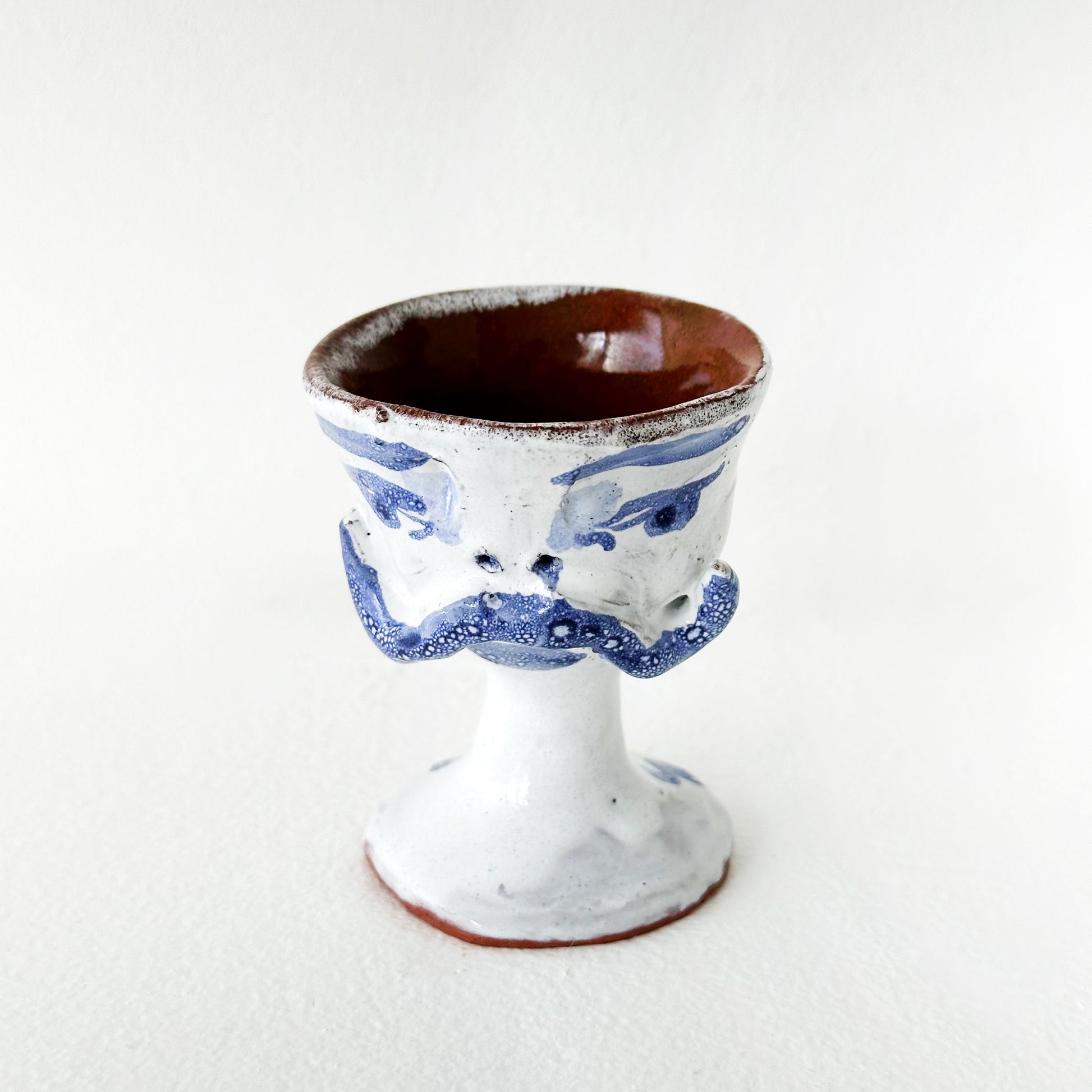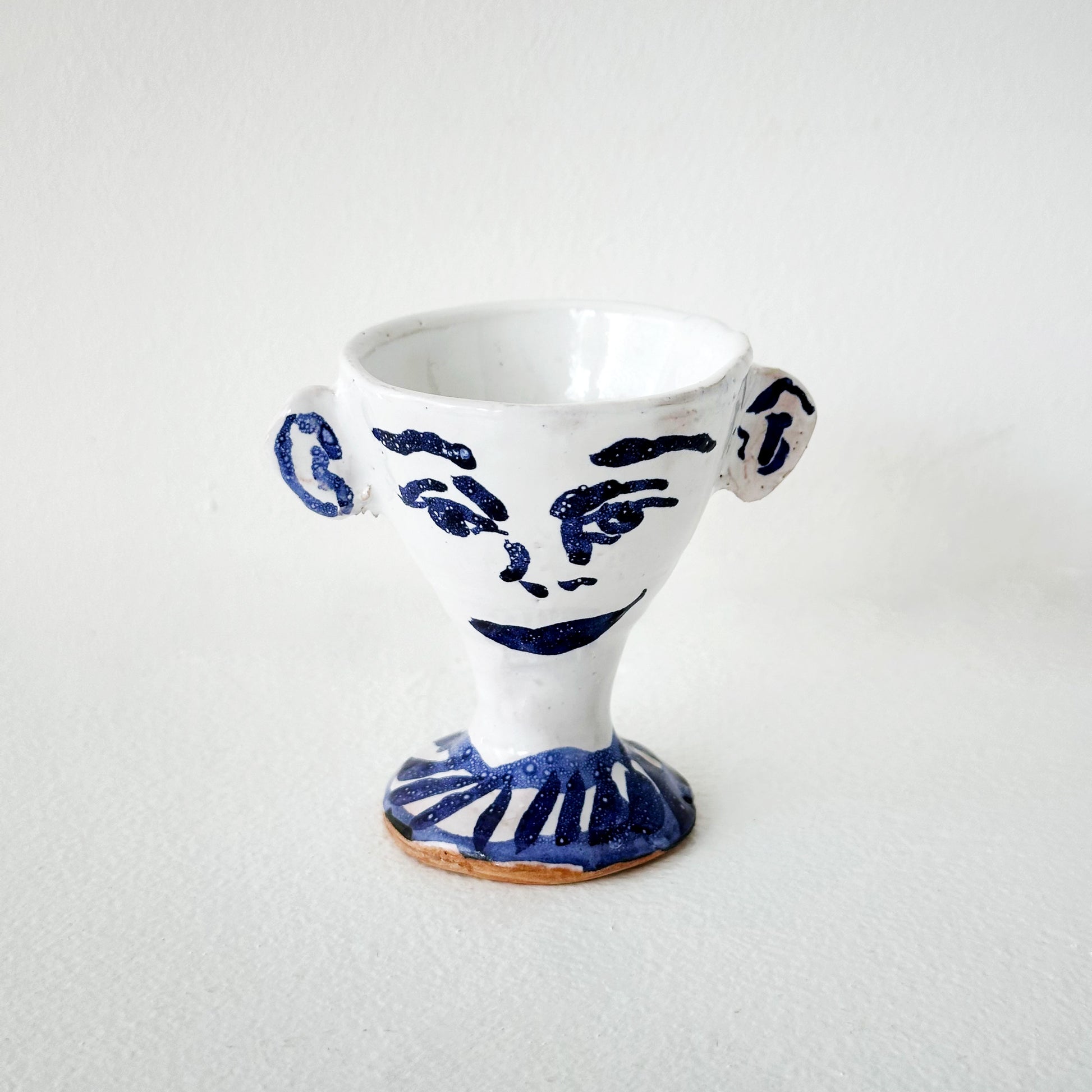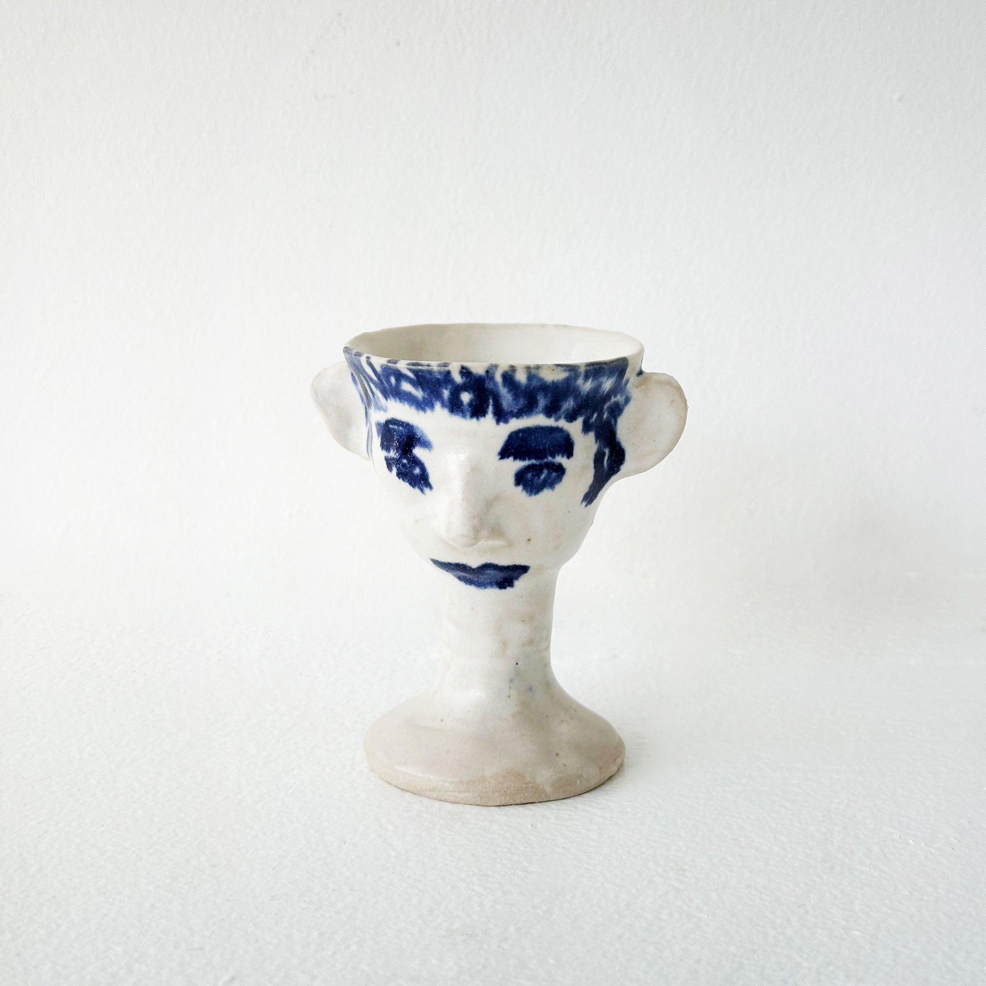 Each handmade egg cup by local artist Alice Macdonald has a unique face and design.