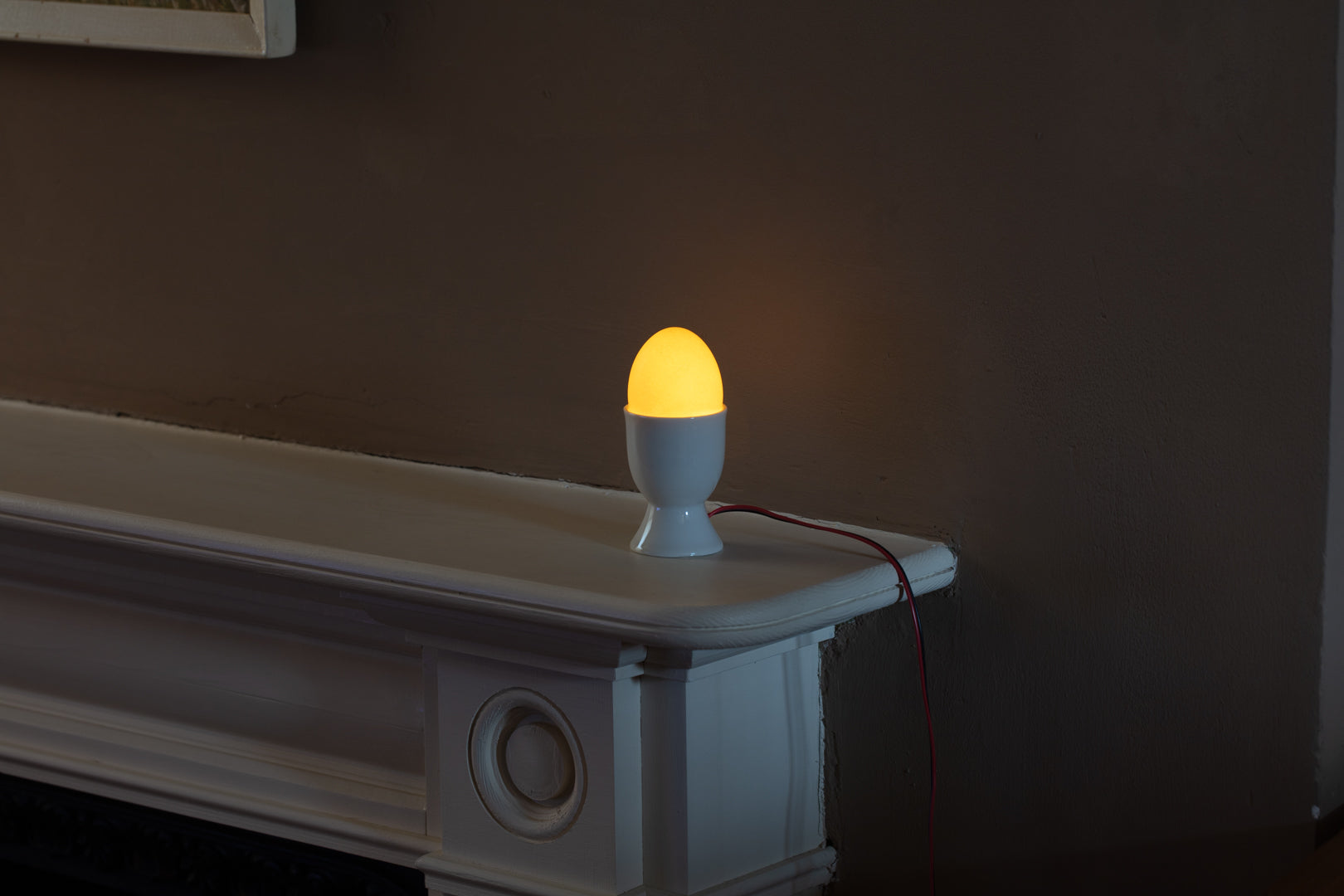 Porcelain egg cup, egg shell, led light, electric wire, 12v power supply