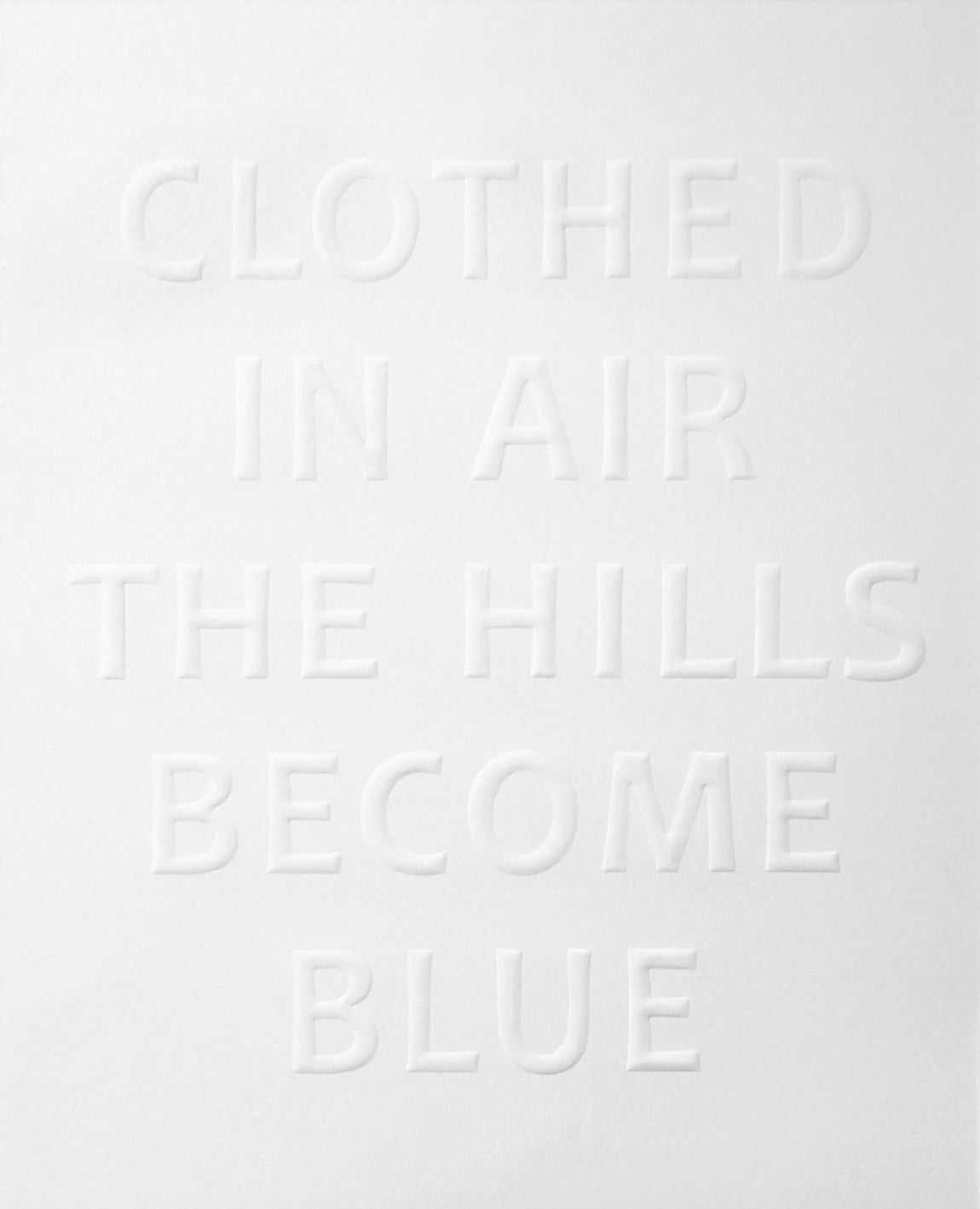'Clothed in air, the hills become blue' is a quote from Living Mountain by Nan Shepherd, who spent her life exploring and engaging with Cairngorm mountain (meaning 'The Blue Hill' in Gaelic). Her intense, poetic prose composed during the Second World War in the Scottish Highlands is a powerful meditation on nature.